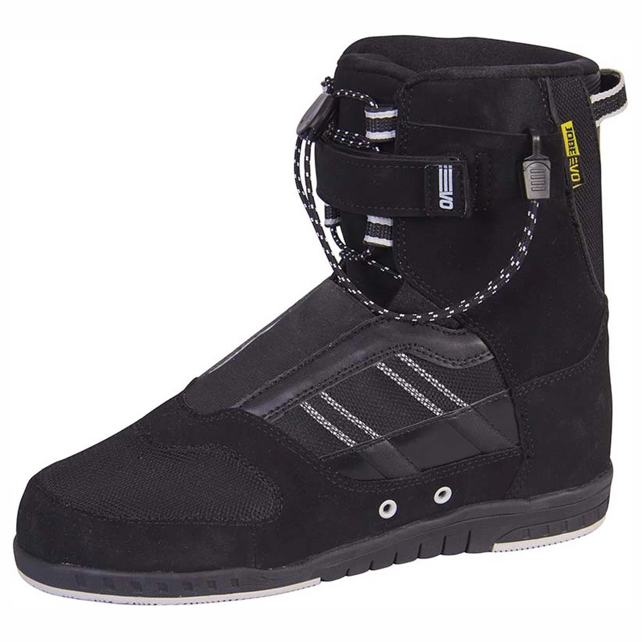 Sports aquatiques fixations jobe evo drift sneaker. Nous vous présentons la nouvelle chaussure drift pour combiner skin et fixation. Elle est renforcée par un support arrière rigide qui donne cet ultime sentiment de contrôle sur la planche. Elle possède une semelle intérieure personnalisée qui maintient le pied parfaitement là où tu veux quil soit et qui absorbe les chocs. La semelle extérieure est fabriquée dans un mélange deva et de caoutchouc. Pendant que leva absorbe les chocs et donne un haut niveau de confort, le panneau en caoutchouc procure un maximum dadhérence en toutes circonstances. Pour faire court : le confort ultime sur leau. Fais-en bon usage!specifications:- cstm insole: cette chaussure possède une semelle personnalisée qui tient parfaitement le pied en position. Un bon support permet à ton corps d´absorber les chocs et de maximiser les sensations de contrôle de ta planche.- cstm outsole: la semelle extérieure est fabriquée d´un mélange d´eva et de caoutchouc. L´eva absorbe les chocs et prodigue un haut niveau de confort pendant que les crampons en caoutchouc te donnent un maximum d’adhérence sur tous types de surfaces.- straps: trois bandes velcro de 1.8 / 4.5 cm offrent un gain de temps et denergie pour mettre et enlever les chausses.