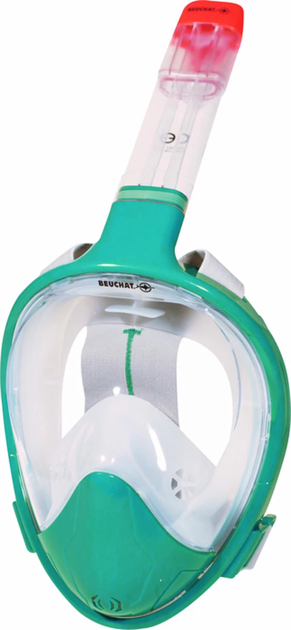 Le masque intégral Beuchat est conçu pour le snorkeling de surface. Il vous permet d’observer les fonds marins en respirant naturellement par le nez et la bouche. Sa jupe en silicone empêche les infiltrations d’eau. L’observation est facilité par sa vision panoramique à 180°. Son tuba pliable vous permet de la transporter facilement. Une fixation pour caméra de sport est présente sur le masque. Hublot anti buée. Hublot traité Anti UV. Cerclage et boucles en Polycarbonate pour une grande solidité. Sangle élastique textile (ne tire pas les cheveux). Poids : 590gr.