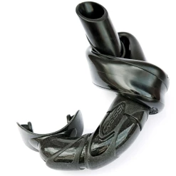 Tube entièrement nouveau, initialement étudié pour l’apnée mais réunissant des vertus spéciales adaptées également à la plongée et à la plongée en apnée.Le matériau du tube est particulièrement souple en polyuréthane et avec une mémoire élastique de 100% après avoir été soumis à flexion, pliage ou même nouage sur lui-même pendant des jours. La section des parois du tube est étudiée de façon à maintenir la rigidité nécessaire dans la zone de pression de la bande du masque afin de ne pas nuire à la circulation de l’air dans cette zone en cas d’utilisation fixée par la bande du masque.La buse, très confortable, a un design qui combine différentes épaisseurs pour favoriser son autorientation et libérer de tensions la mâchoire de l’utilisateur. La zone en contact avec les gencives est exceptionnellement flexible et d’une épaisseur minimale. Le joint buse/tube est particulièrement sûr en cas de séparation accidentelle possible.