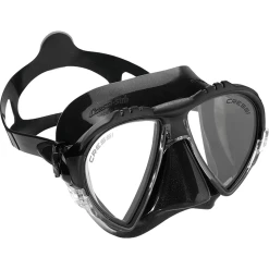 Palmes, masques et tubas masques cressi matrix. En suivant les principes révolutionnaires introduits par le big eyes, le masque matrix établit de nouveaux records.le concept (breveté) des verres inclinés et de leur configuration particulière en forme de gouttes d’eau a été encore amélioré.les verres se trouvent dans une position la plus proche possible des yeux, augmentant encore le champ de vision et le portant aux plus hauts niveaux envisageables.le cerclage, d’un dessin nouveau, est très fin et se révèle invisible lorsque le masque est porté.dans la partie haute du cerclage se trouvent des inserts en matière caoutchoutée assurant un très fort grip et une esthétique attrayante.la jupe en silicone souple possède un nouveau profil et une large lèvre d’appui pour une étanchéité excellente et un confort sans précédent.le volume interne du masque est exceptionnellement réduit et même inférieur à celui de plusieurs modèles destinés à l’apnée. Son poids aussi est particulièrement contenu.deux boucles à pression, intégrées dans le cerclage, permettent un réglage du sanglage rapide et précis.ce dernier, entièrement redessiné, possède un très esthétique zone d’appui sur la nuque pour un confort royal.excellent masque pour le pmt, la plongée bouteille et l’apnée.caractéristiques techniques * type : masque à deux verres * versions : silicone transparent, silicone noir * matériaux : silicone liquide, technopolymères, élastomères * boucles de sangle : à pression, avec réglage instantané * volume interne : extrêmement réduit * dimensions du cerclage : 163 x 91 mm * poids : 175 g * verres correcteurs : non disponibles