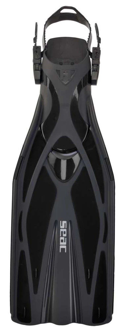 Palmes Réglables Seacsub F1 Fin. Caracteristiques: – Matériau de la pale : technopolymère Ultralight Flex à hautes prestations et haute résistance aux impacts même à bassetempérature – Matériau de la partie chaussante : combinaison de technopolymère et délastomère thermoplastique – Poids (palme simple): 730 g.