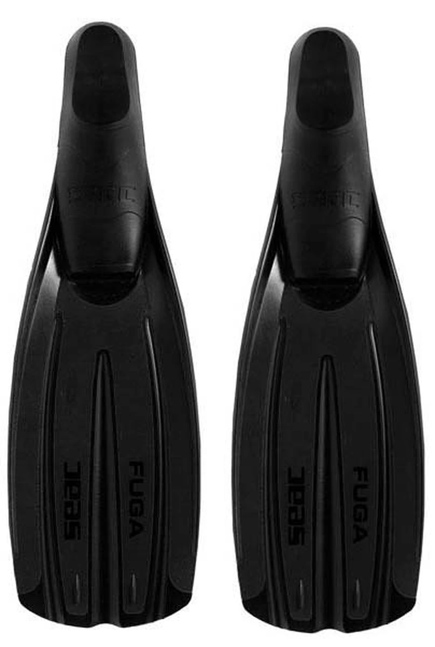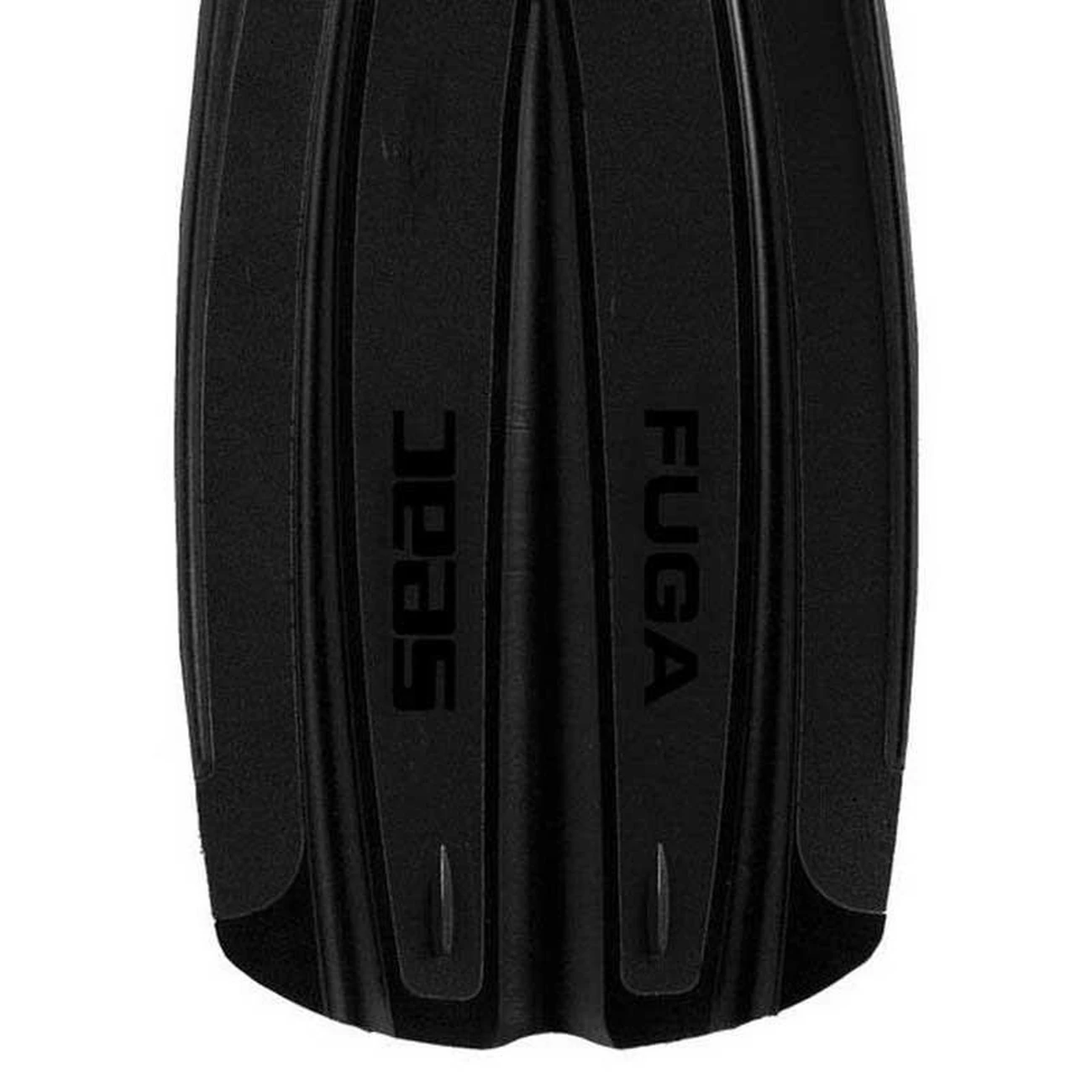 Palmes Chaussantes Seacsub Fuga. Caractéristiques: – Canalisateurs deau et dérive.- Nervure extérieure.- Voilure en technopolymère avec formulation spéciale.- Matériau de la voilure: technopolymère à haute module – Matériau de la partie chaussante: caoutchouc thermoplastique